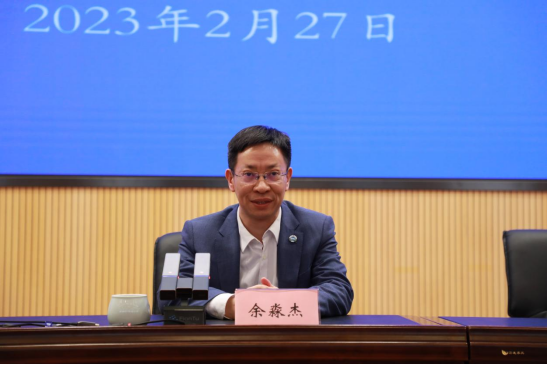 2月27日下午,校党委副书记、校长余淼杰在蒲河校区校部办公楼学术报告厅讲授“开学第一课”。授课采取线上线下相结合方式。活动由校党委副书记孙士国主持。