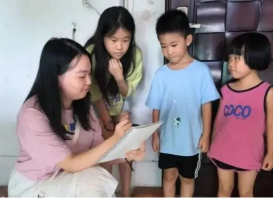 实践团队通过实地调查,发现牛江小学教学资源紧张、规模较小,当地方言属于粤语钦廉片,学生们普遍存在普通话发音不准的问题。为提升当地小学生们的普通话水平,团队成员通过录制微课、线上课堂及线下授课相结合的方式开展普通话推广,并开设诵读、书法、篆刻、绘画等语言文化“第二课堂”。